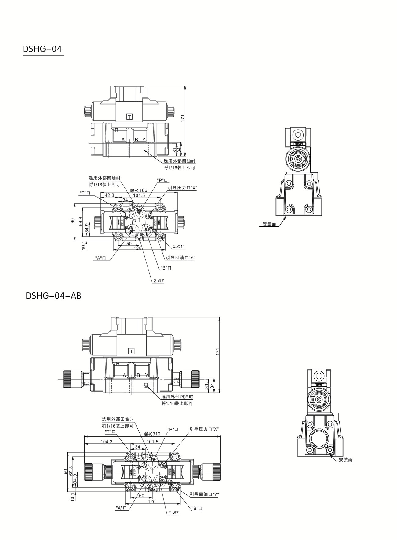 ● 電磁閥作先導閥,疊加在液動閥上控制閥芯位移,