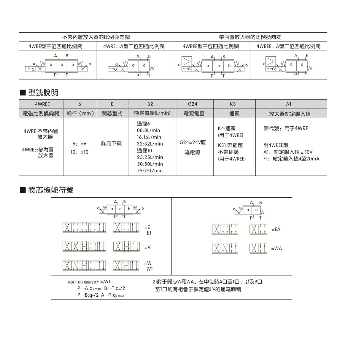 ● 4WREE:帶集成式放大器 ,  可與歐美同類(lèi)型產(chǎn)品互換。