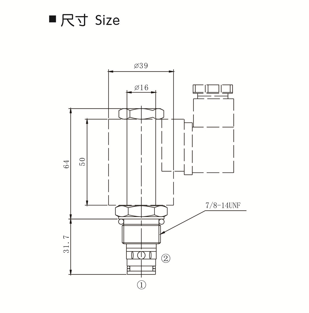 * 不通電時液壓油可從①到②,