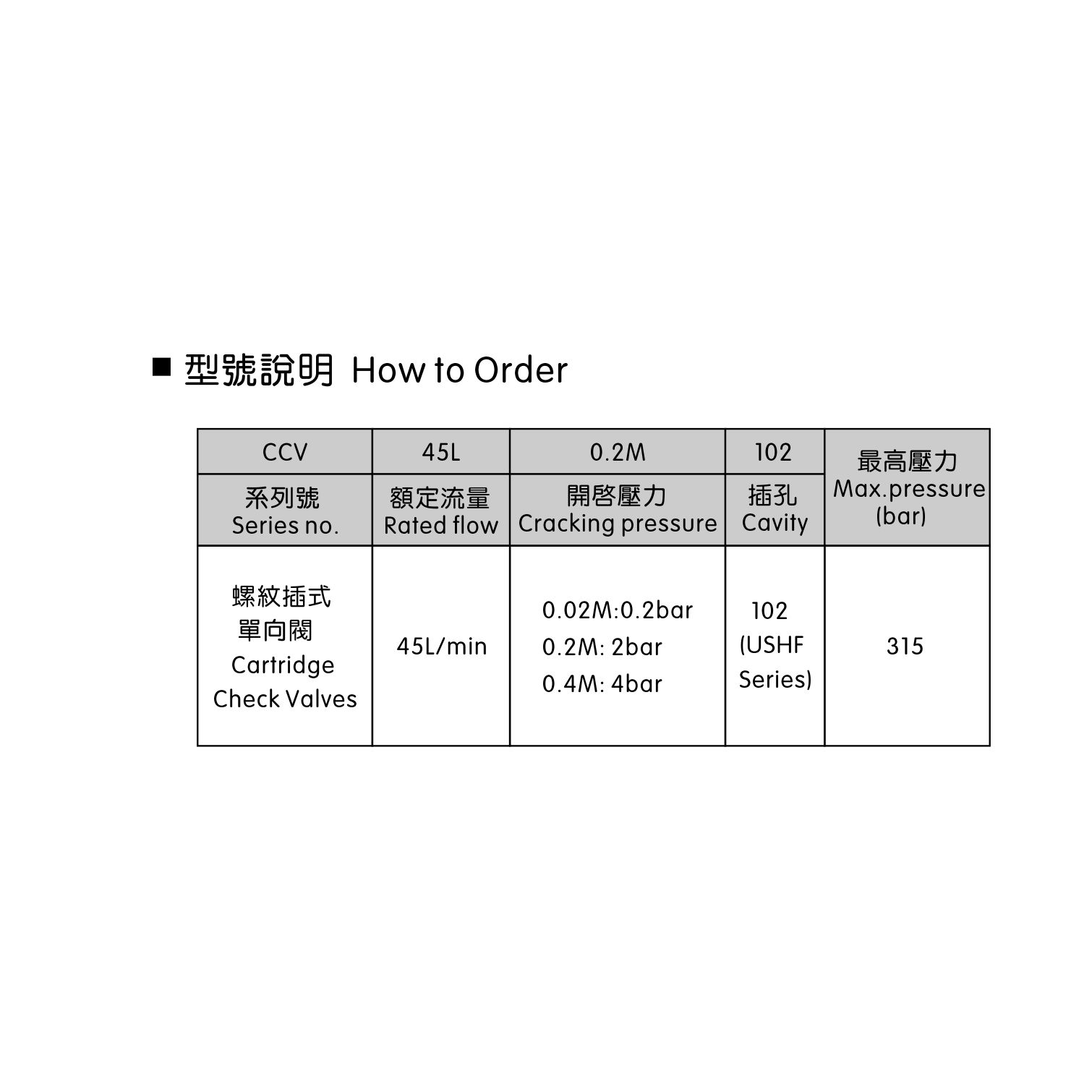 螺紋插裝式單向閥 止回閥 CCV-102